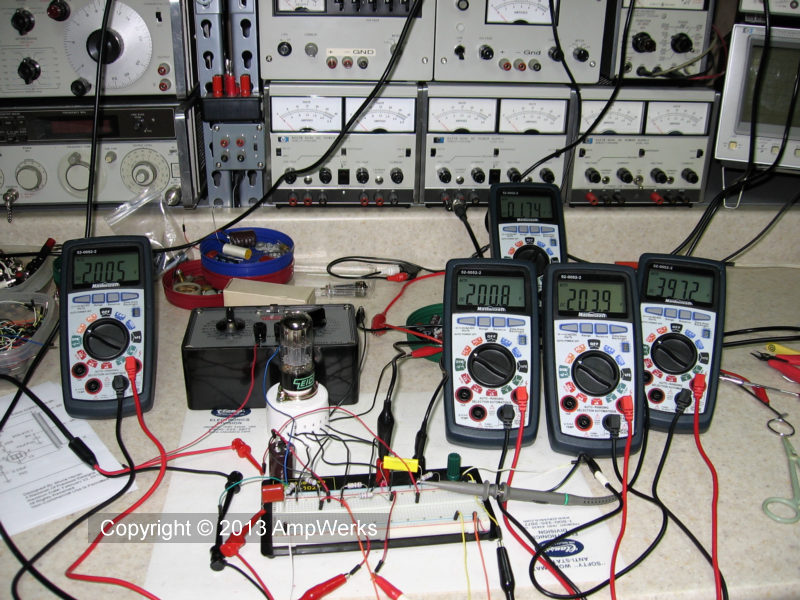 I chose the symmetrical totem pole, or SRPP topology primarily because of its inherently low distortion, low output impedance, and its ability to drive our EL34 driver stage. The two triodes in the totem pole are DC coupled and the stage is inverting.