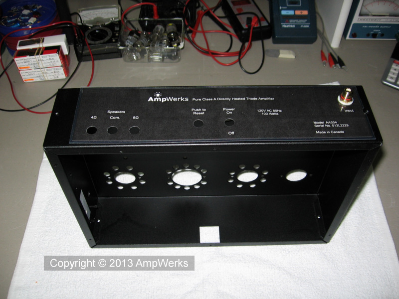 The back panel labels were prepared in Corel Draw and then printed and laminated. The labels are held in place by the switches and binding posts.